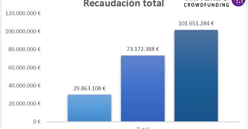 Según el estudio realizado por Universo Crowdfunding, en colaboración con la Universidad Complutense de Madrid «Informe sobre Crowdfunding en España 2017» , el Crowdfunding recaudó en España 101.651.284 € en 2017, un 35,33% más que en 2016.